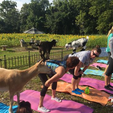 . We practice together as one in nature with other animals. First the calm sets in as you find a spot to lay down your mat in our Yoga Corral. We offer private goat yoga classes for groups toobirthdays bachelorette parties sports teams team building or groups of friends.
